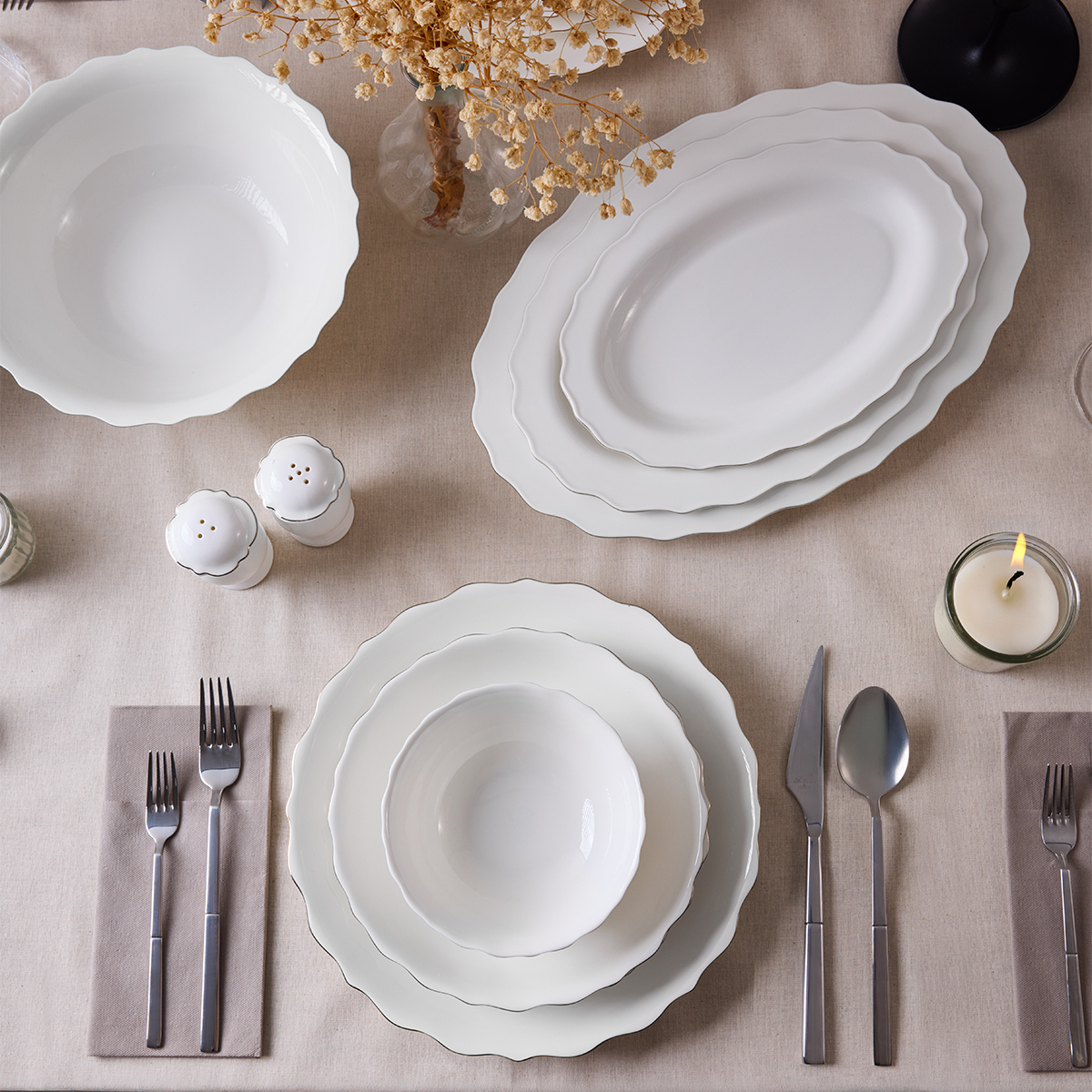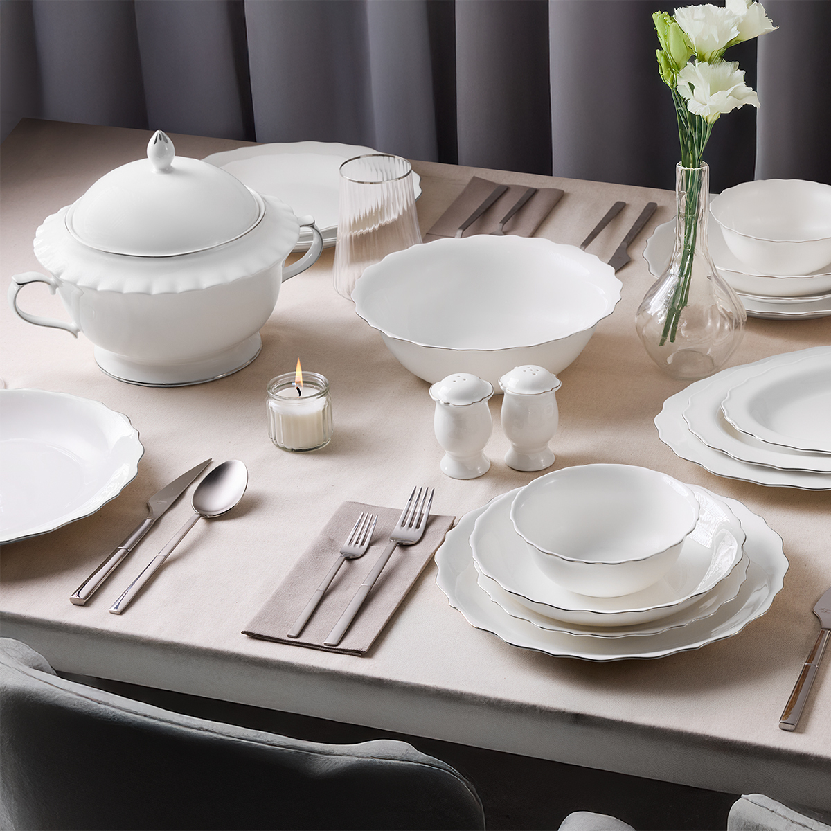 Görkemli bir davet sofrası ya da sevdiklerinizle paylaşacağınız sıcak bir akşam yemeği… Hangi an olursa olsun Seawave Platin, sadeliğin içindeki ihtişamı sofranıza taşır. Beyaz porselenin üzerine işlenen zarif platin çizgiler, ışığı yumuşak biçimde yansıtarak masada modern bir ışıltı yaratır.