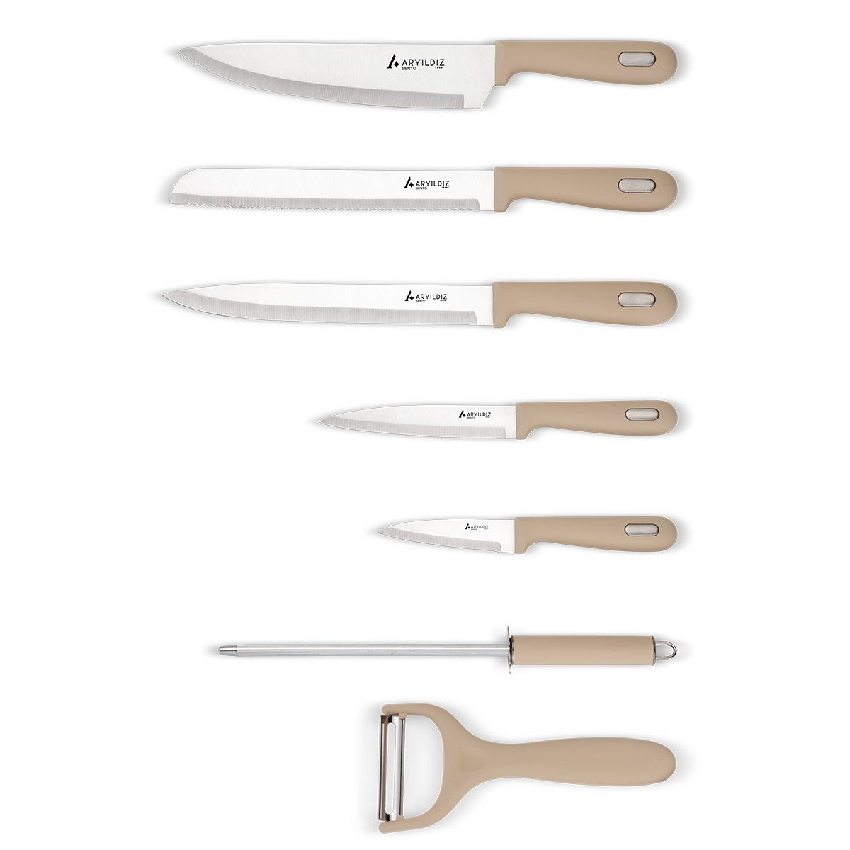 Günlük kullanımda ihtiyaç duyduğunuz tüm bıçak ve aksesuarları bir araya getiren bu set, yemek hazırlık sürecini daha pratik hale getirir.
