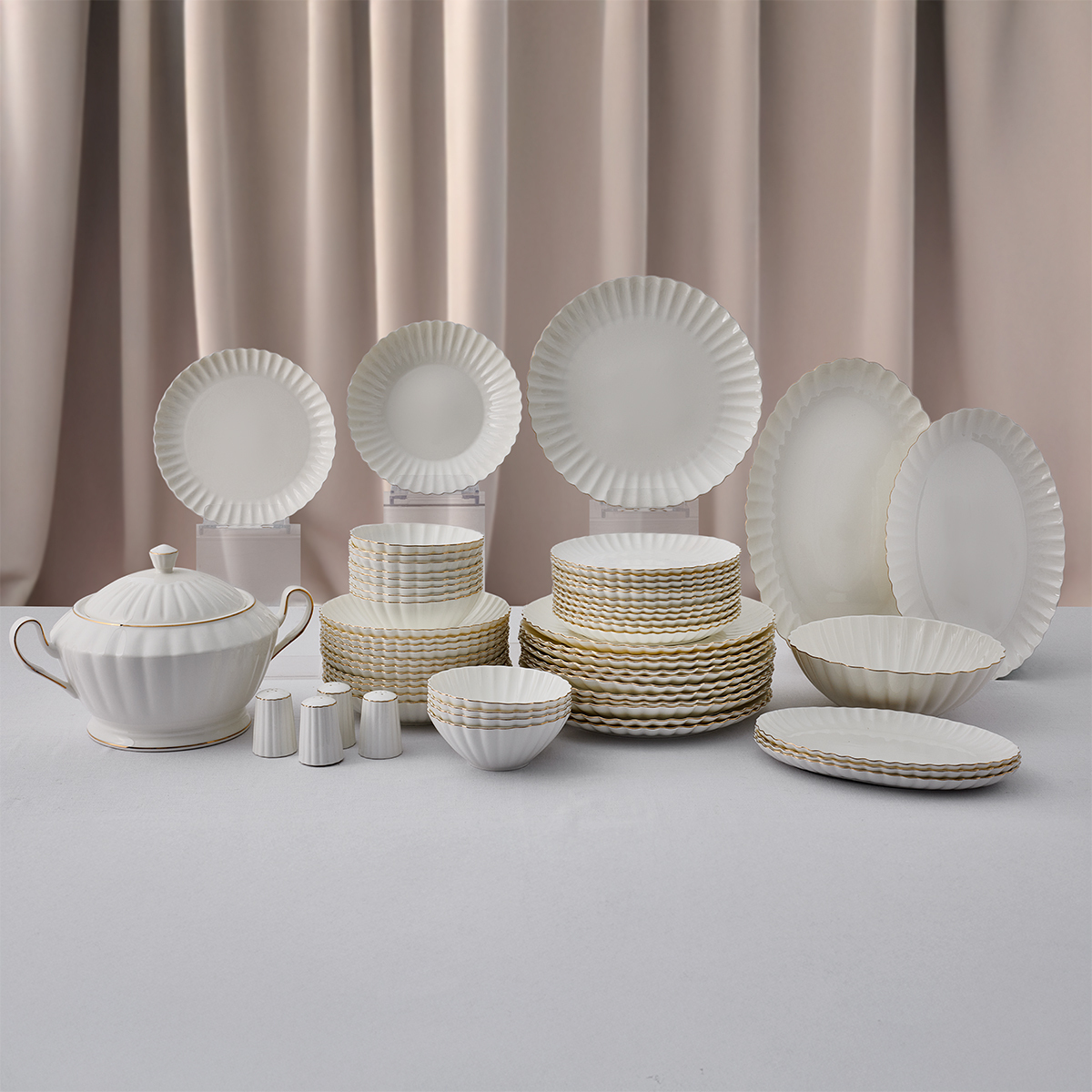 Şıklığı ve zarafeti sofranıza taşıyan 60 Parça Yemek Takımı, kalabalık aile yemekleri ve özel davetler için ideal bir seçimdir.
