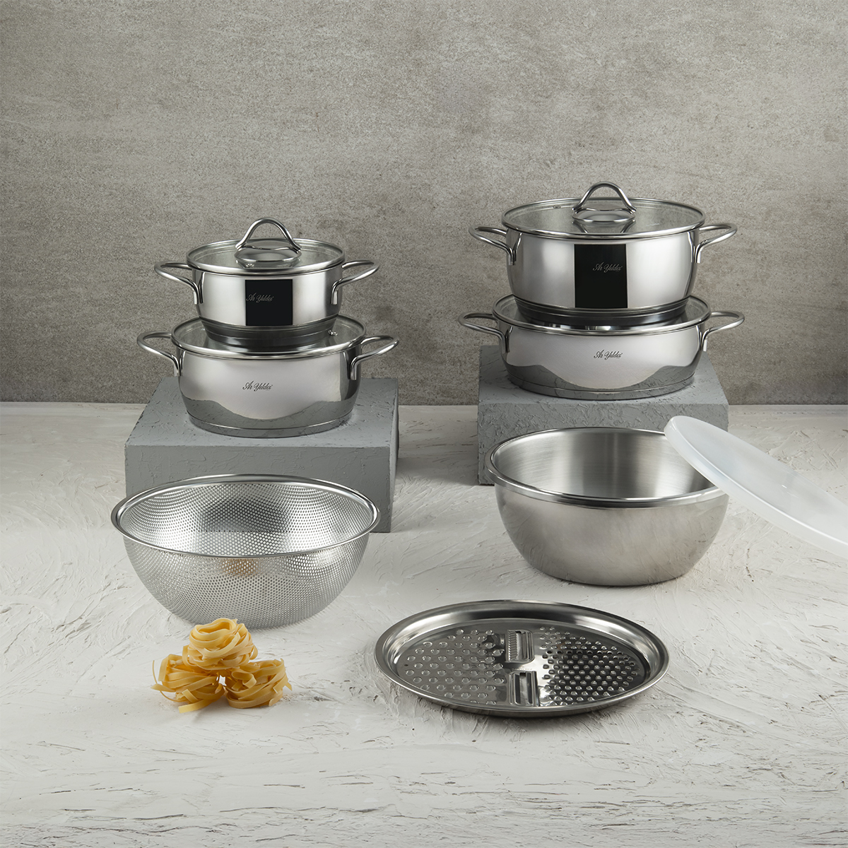 Çelik tencerelerin dayanıklılık ve kullanışlılığı ile Aryıldız kalitesi bir arada... Hem sağlıklı, hem de lezzetli yemekler hazırlamak için Aryıldız Solo 8 Parça Tencere Seti tercih edilip kullanılabilir.
