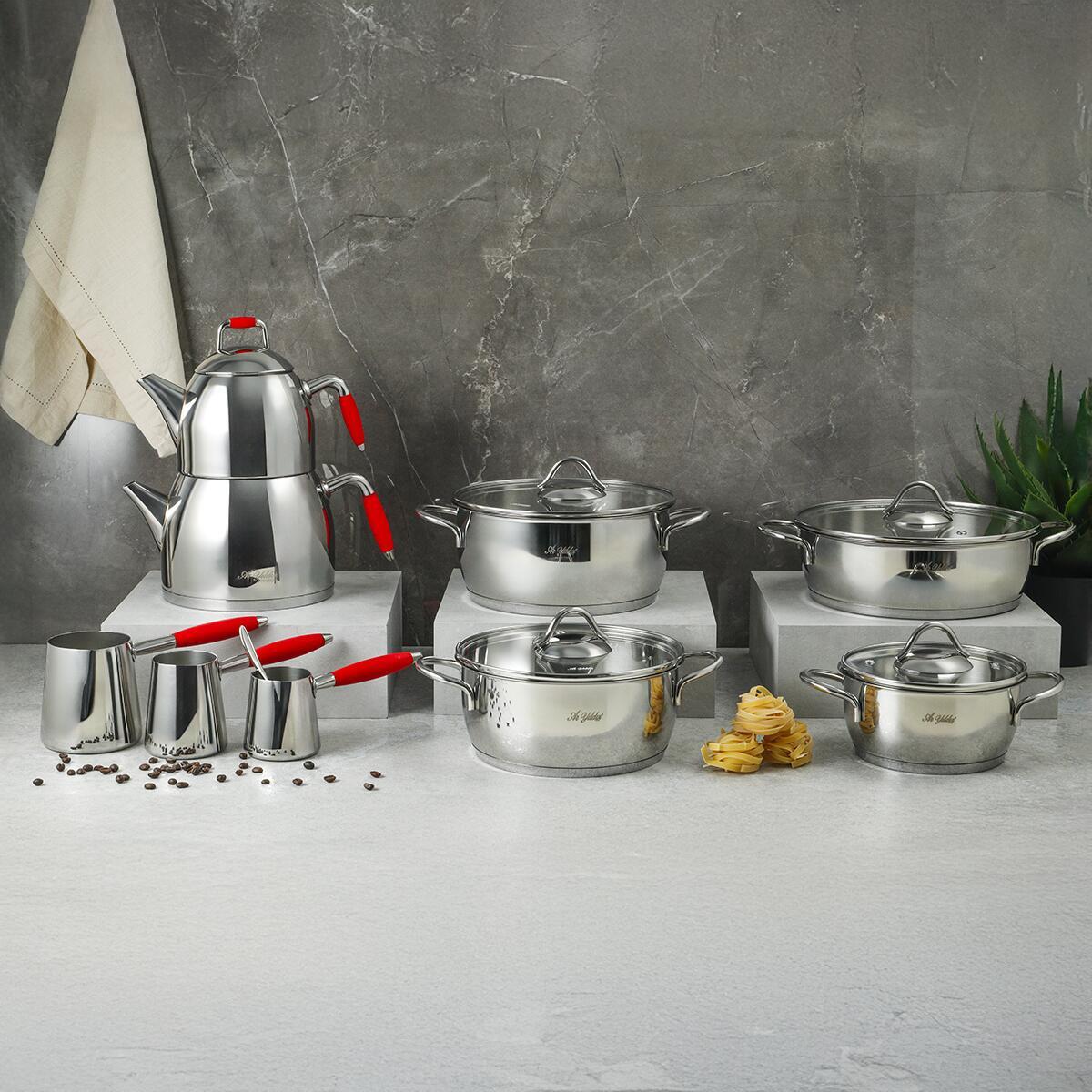 Aryıldız Family Çaydanlık Ve Cezve Takımı Kırmızı