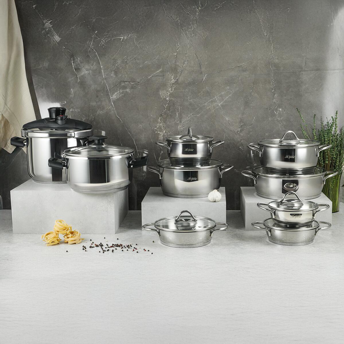 Aryıldız Soho Sahan Seti yüksek kalite paslanmaz çelik gövdesi ve kapsül tabanı ile ısıyı tüm yüzeylere eşit bir şekilde yayarak yemeklerinizin proteinlerini kaybetmeden pişmelerini sağlamaktadır.