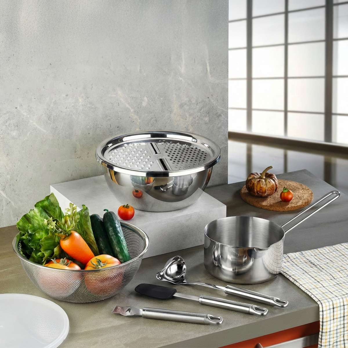 Hem saklama kabı, hem rende, hem süzgeç, hem de karıştırma kabı olarak kullanabilirsiniz.